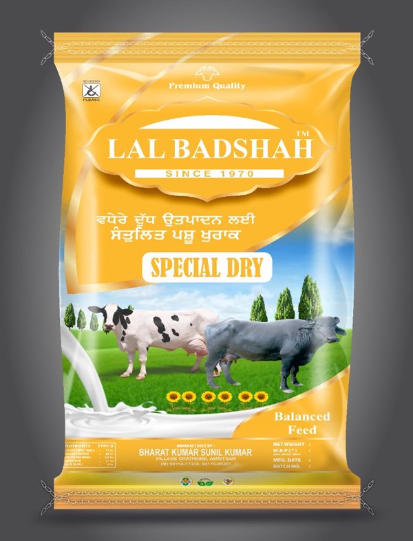 Lal Badshah Special Dry ਲਾਲ ਬਾਦਸ਼ਾਹ ਸਪੈਸ਼ਲ ਡਰਾਈ ਗਾਂ ਮੱਝ ਦੇ ਵਧੀਆ ਸੂਏ ਲਈ ਸੁਣ ਤੋਂ 25 ਦਿਨ ਪਹਿਲਾਂ ਤੋ ਲੈ ਕੇ ਸੁਣ ਤੱਕ ਰੋਜਾਨਾ 4 ਕਿਲੋ ਲਾਲ ਬਾਦਸ਼ਾਹ, ਸਪੈਸ਼ਲ ਡਰਾਈ ਫੀਡ ਦੀ ਵਰਤੋਂ ਕਰੋ। Use 4kg Lal Badshah Dry feed regularly upto 25 days before the pregnancy of cattles for healthy pregnancy. Contact Us Category: Uncategorized Related products Heefer/Dry Cow feed Contact Us Lal Badshah 8000 Contact Us Lal Badshah Calf Starter Contact Us Lal Badshah Grower Feed Contact Us